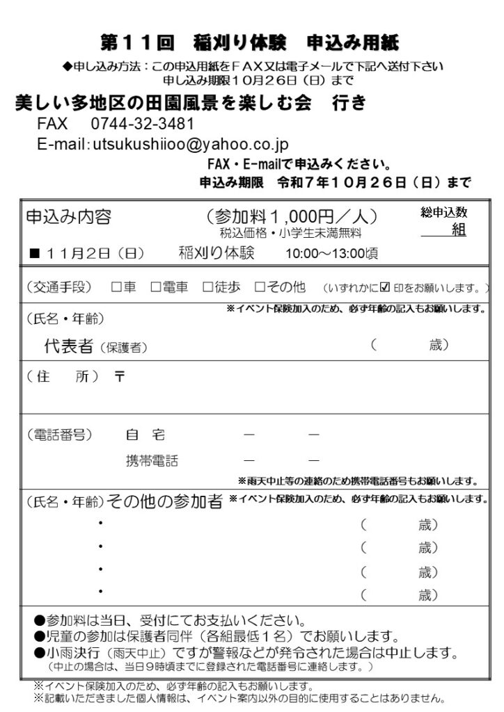 開催日:令和7年11月2日(日)10時~13時頃まで ※雨天の場合は中止(小雨決行)